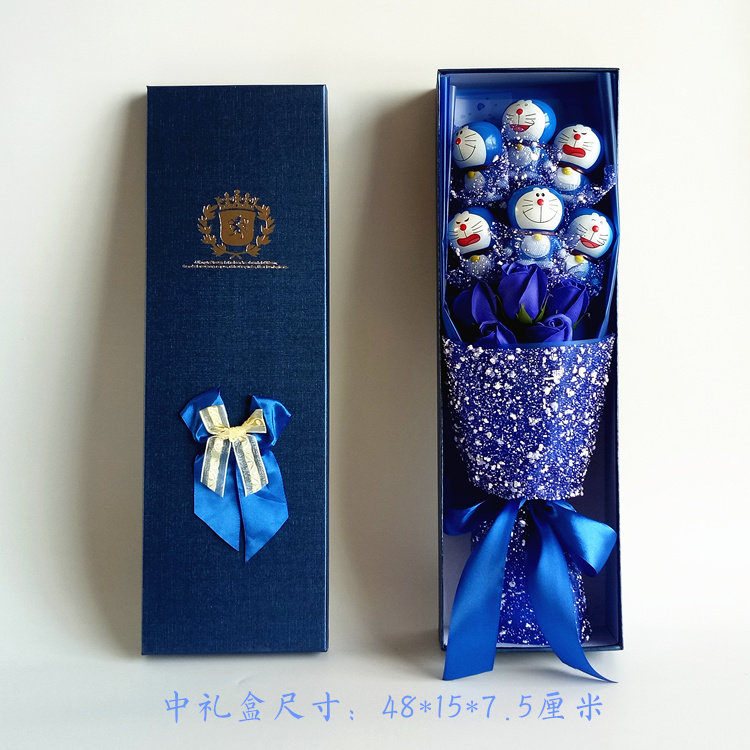 叮当猫机器猫蓝胖子香皂玫瑰花卡通公仔娃娃花束情人节礼物 Wow礼品逛逛